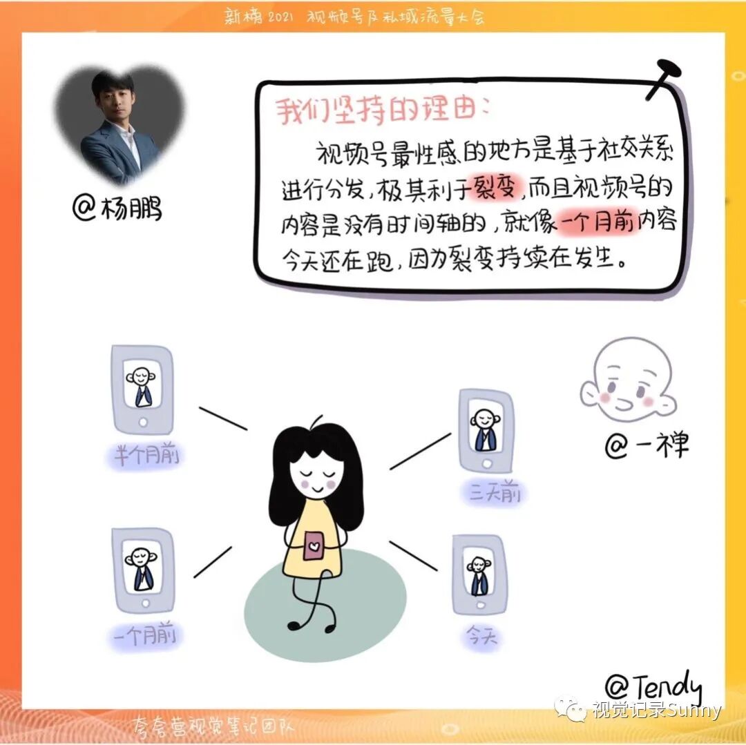 5、第一次链接外界,尝试视觉同传,给新榜2021年视频号:一禅小和尚的创始人杨鹏,线上画演讲视觉笔记。