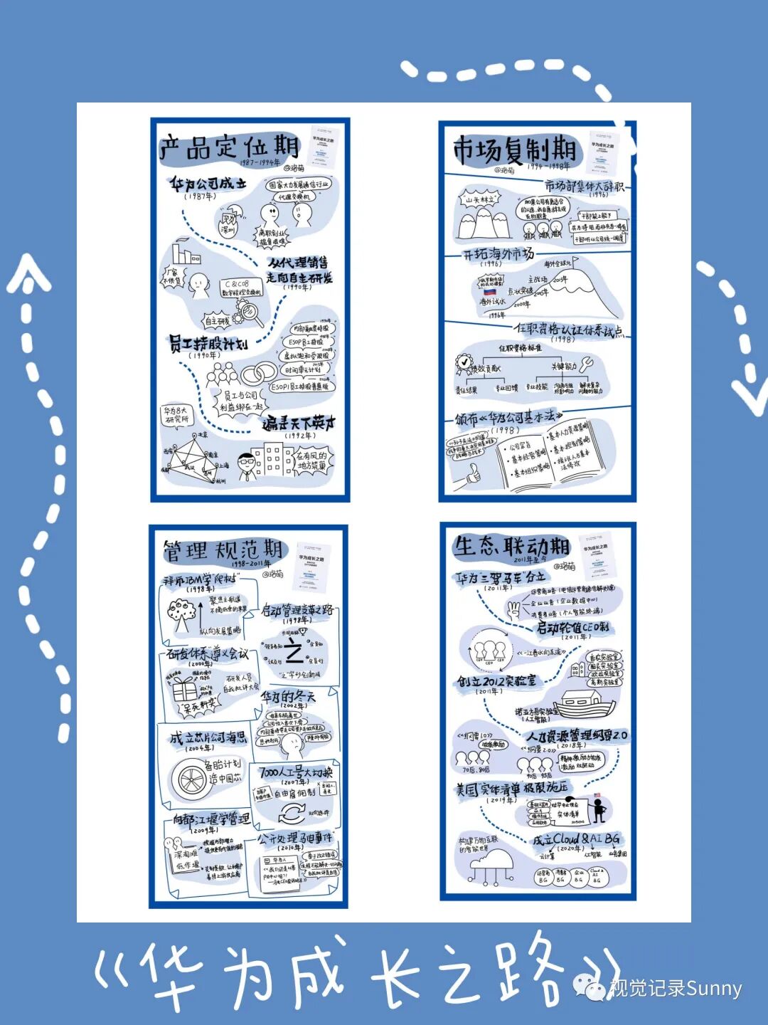 1月份,Sunny老师给了机会,我开始画第1本书《华为成长之路》,还记得当时第一次收到编辑寄书时的激动。