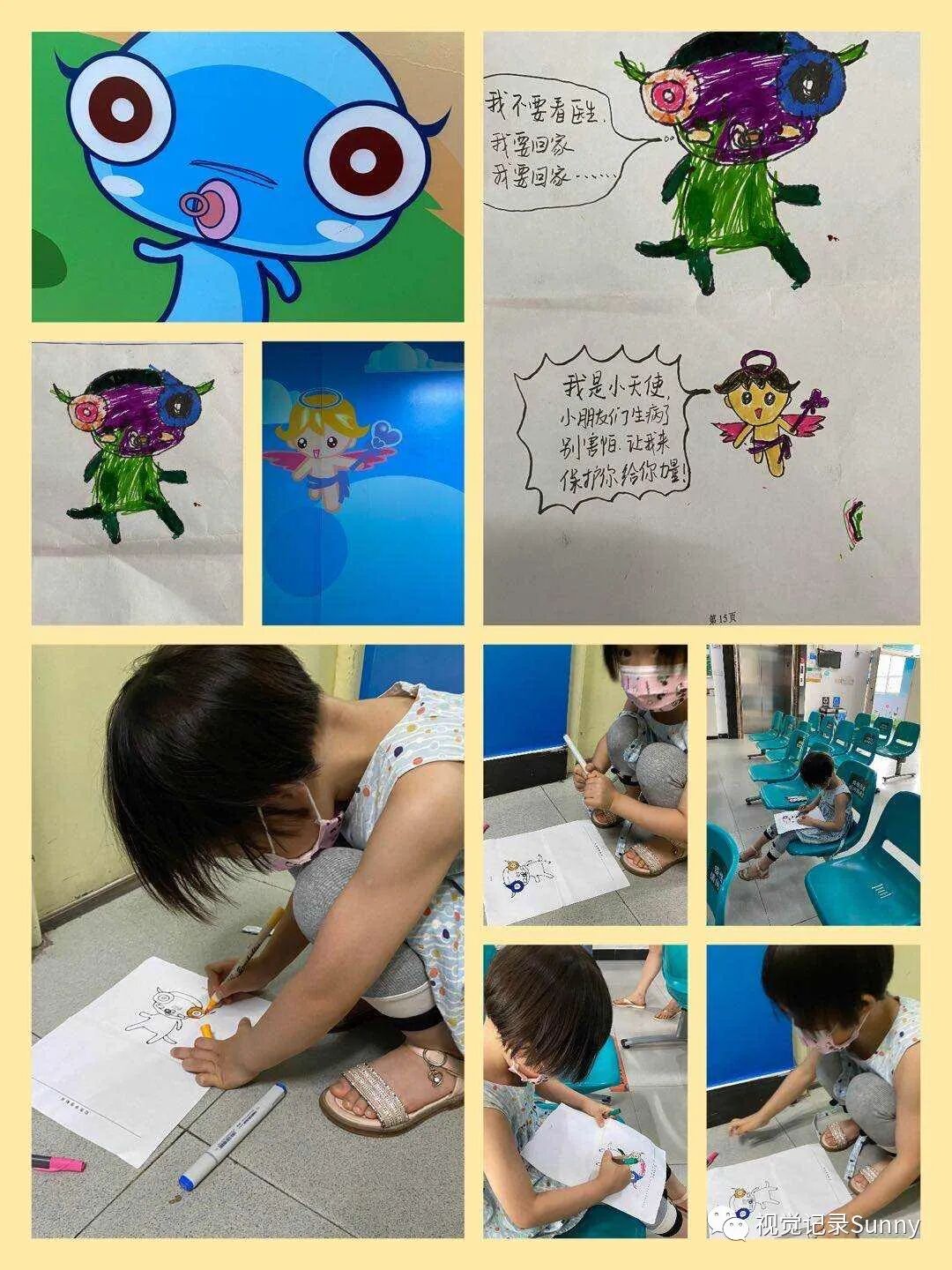 我开始模仿着里面的人物跟她对话,我指着我小天使对她说:”我猜这会小天使一定在说我是小天使,小朋友们,生病了别害怕,让我来保护你,给你力量。”