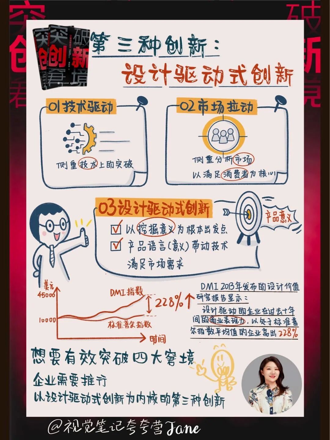 突破窘境,只能靠创新本身驱动。目前主流的观点把创新分为:由技术驱动的颠覆式创新和由市场驱动的渐进式创新。而想突破创新的四大窘境,则需要第三种创新:设计驱动式创新。设计驱动式创新的底层逻辑—设计思维(Design Thinking)。