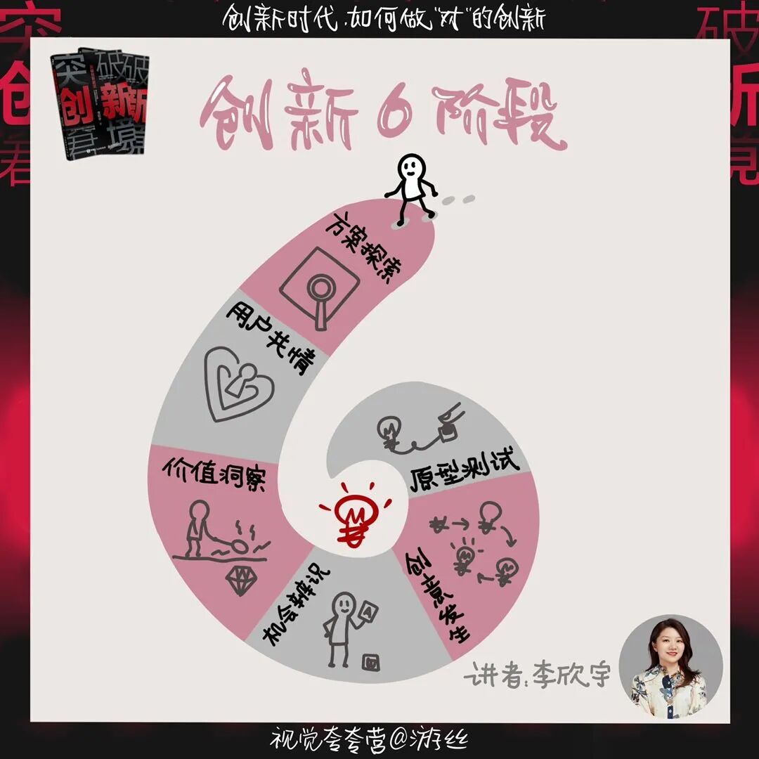 ·六大阶段包括:方向探索、用户共情、价值洞察、机会辨识、创意生发和原型测试。