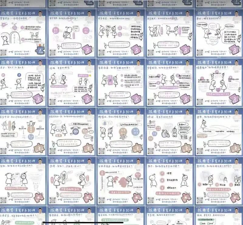 在画陈海贤老师《了不起的我》那本书之后,陈老师也通过微博和得到联系到了我(画完一定要全网发!并且能@作者、出版社就@),并在3天里,为其《亲密关系30讲》课程做了30张视觉笔记图,一度累趴,但看到陈老师的签名新书,又觉得一切都值得!