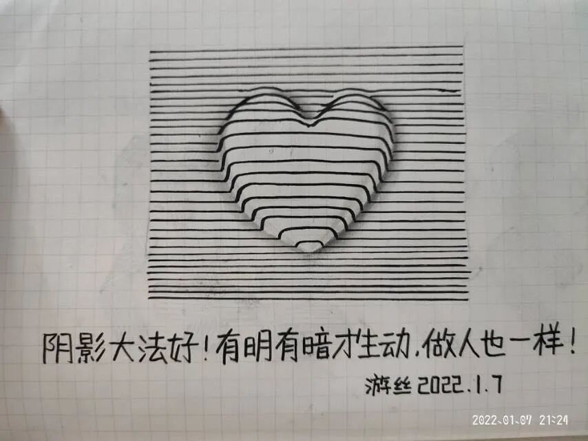 哈哈,说实话上前两节课我都有点蒙,不知道是干嘛,心里想,跟着老师走就没错,于是带着问号画呀,磨呀……回头再一看,浮躁的心磨平了,也知道自己是干嘛的了!Ps:原来线条可以这么美!哇哈哈!😎 😎 😎