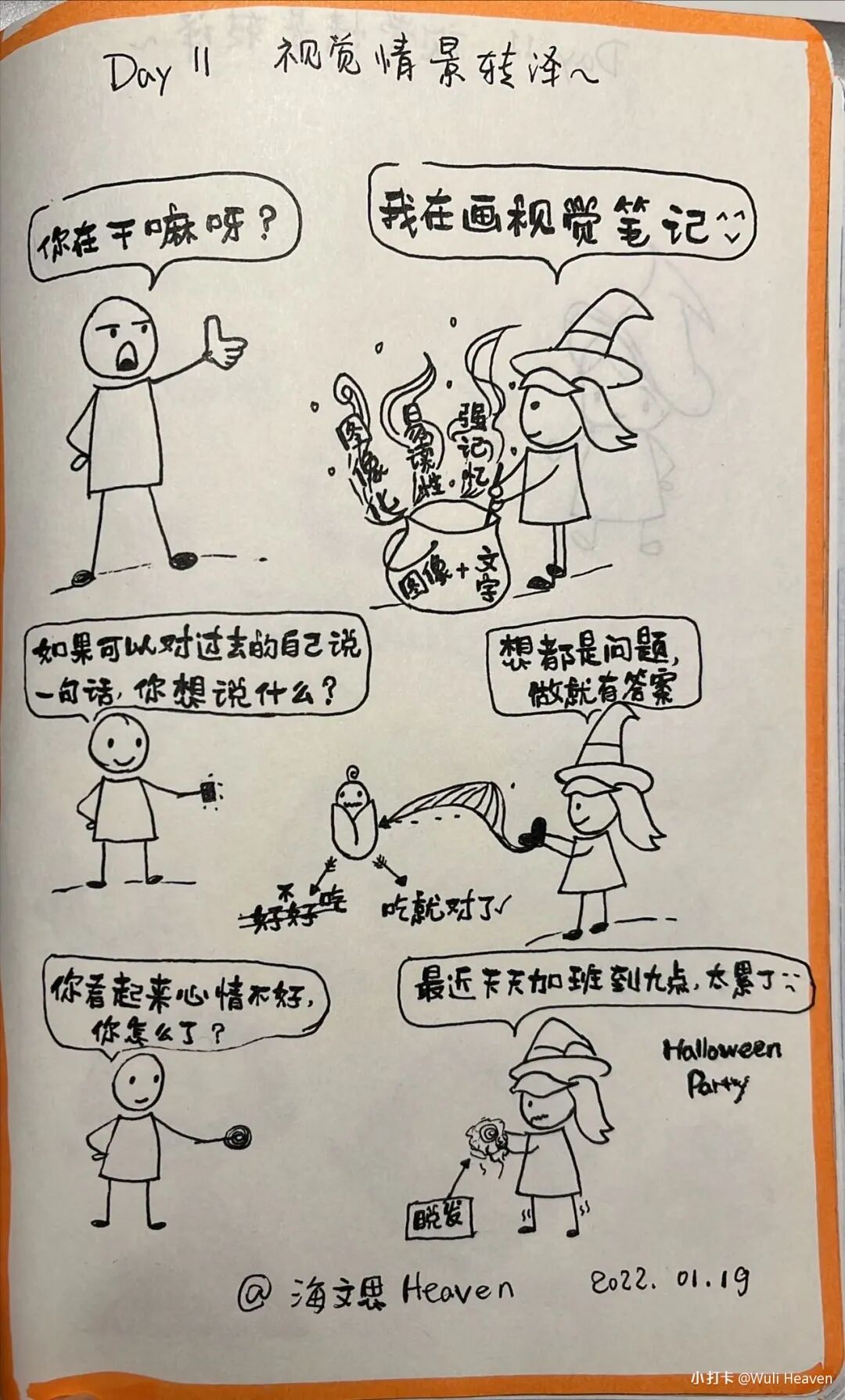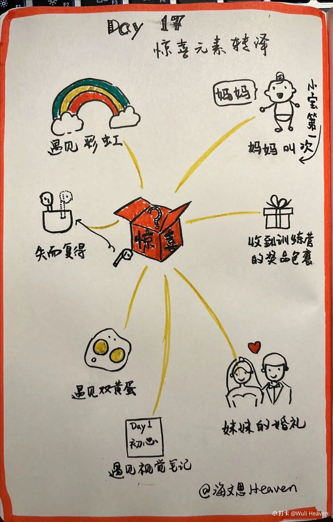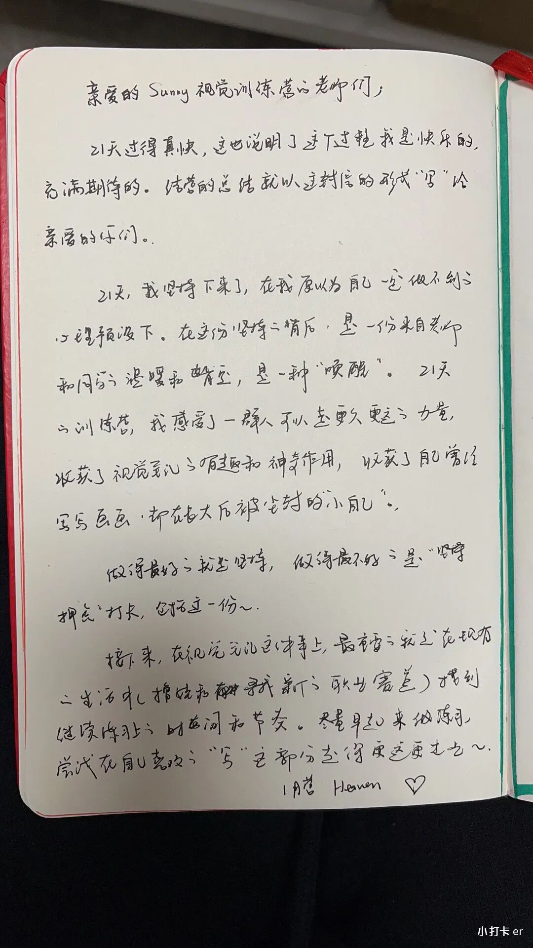 我是一月营的Heaven,二胎宝妈和K12英语培训老师一枚。在亲密战友的指引下,加入了Sunny视觉笔记2022一月营。21天坚持打卡下来的感受总结成两句话: