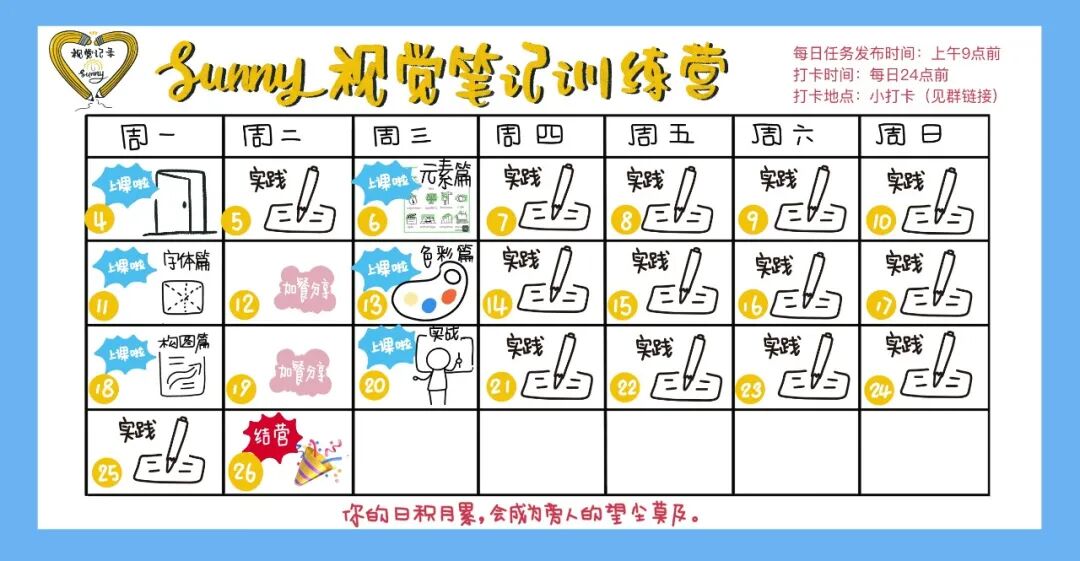 在加入Sunny视觉笔记训练营88天时,她创造了属于自己的视觉小人,她成为了别人口中的灵魂画手,她绘制了数不胜数的视觉卡片和海报。