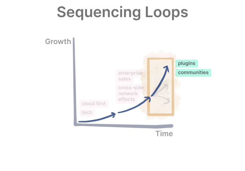 长期成功的公司会不断找到下一个业务增长的循环,上面这张图展示了 Figma 走向成功的关键路径。