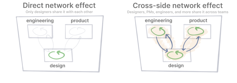 这种交叉影响产生的网络效应,又会直接影响公司的付费意愿。如果产品经理、工程师甚至 CEO 都认为这个工具很重要,显然要比仅仅能给设计师带来好处而产生的购买决策要容易的多。