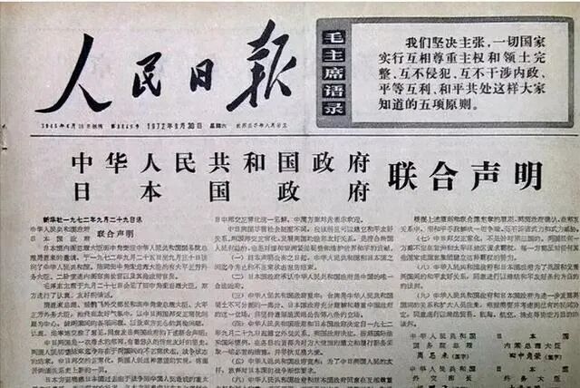 《人民日报》刊登《中日联合声明》。图源:GJ