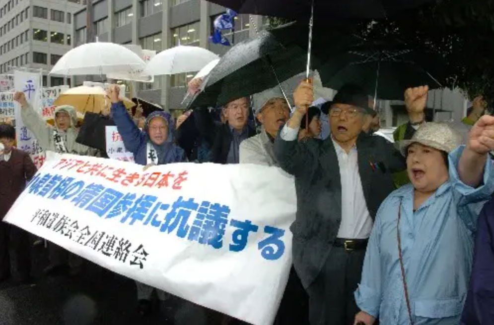 2001年,日本民众抗议首相小泉纯一郎参拜靖国神社。图源:GJ