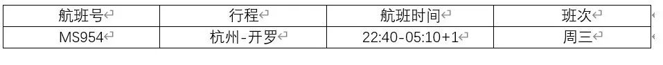 埃及航空杭州至开罗的航班MS954夏季最新时刻如下: