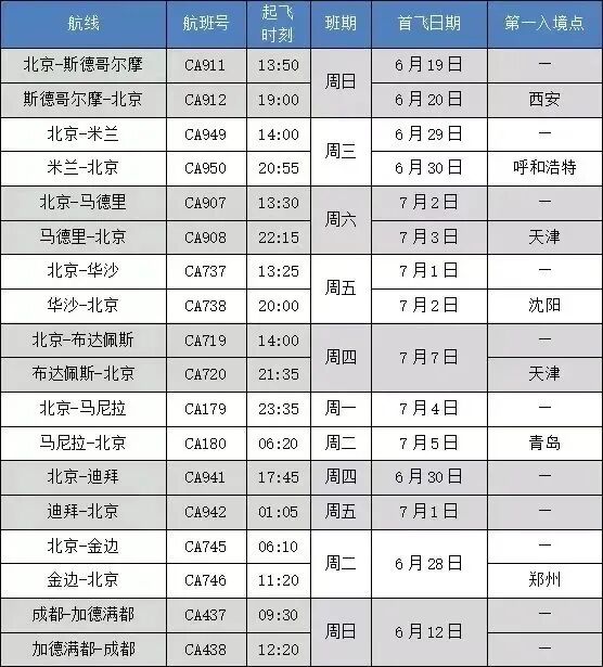 7月,官方发布消息表示:近期国航陆续恢复多条国际航线,涉及欧洲、亚洲多个城市,每条航线每周往返执飞一班,包括瑞典斯德哥尔摩-北京等热门航线。