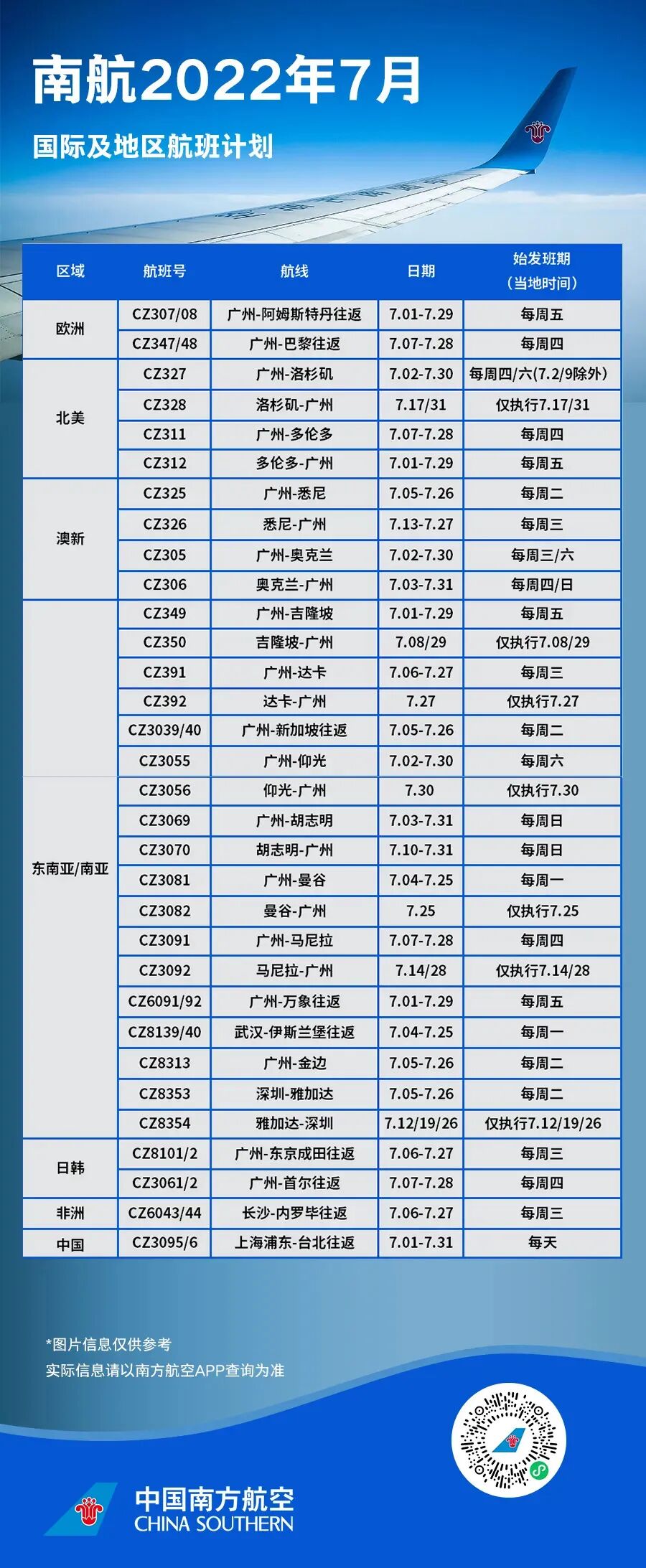 *以上航班计划可能有所变化,请以南航官网、APP、微信小程序等官方渠道实际查询为准。