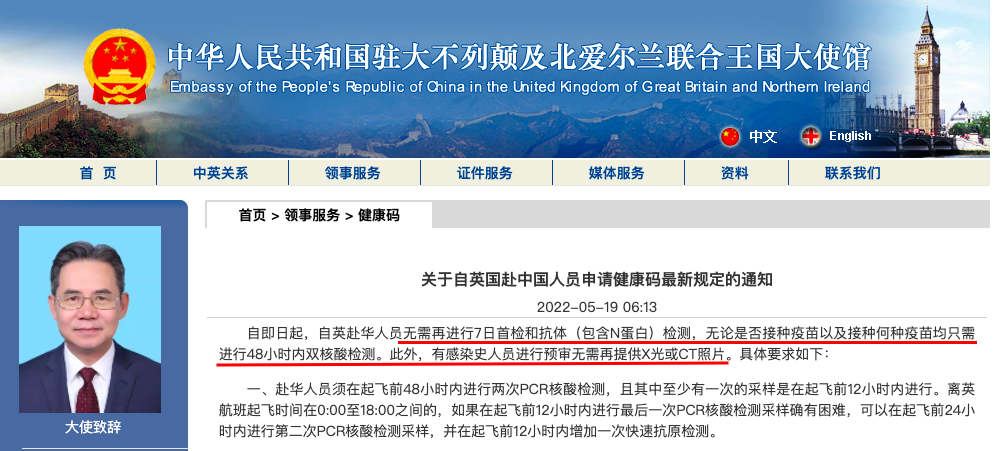 6月30日,据驻英国大使馆发布的 申请健康码最新规定 通知,即日起,自英赴华人员 无需再进行