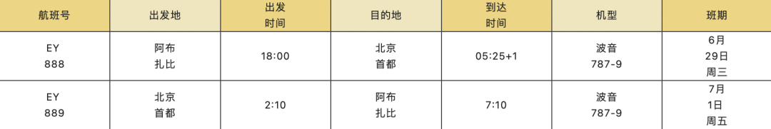 阿提哈德航空宣布于2022年6月29日起恢复阿联酋首都阿布扎比至中国首都北京的直飞客运航线,该航线是近期国务院应对新冠疫情联防联控机制对入境北京直飞国际客运航班调整以来开通的首条定期直飞航线。