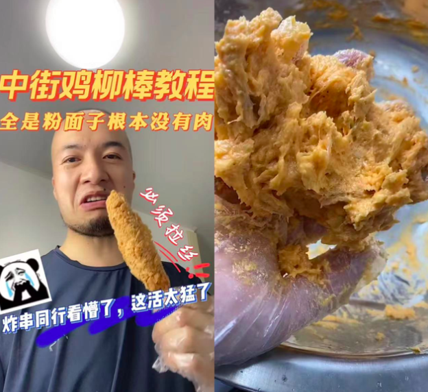 事实上,在今年6月以前,辛吉飞还只是一个普通的美食博主,视频内容主要是分享街边小吃的制作方法。直至今年6月,辛吉飞分享了一条鸡柳棒的制作教程,视频中小吃的原料基本全是面粉,加上少量的鸡肉搅拌,最终制成了街边人们经常见到的那种鸡柳棒。看完视频过后,粉丝直呼“全是科技与狠活,再也不敢吃那些路边摊了”。