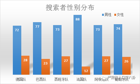 而法国队成为一个名副其实的直男队,不仅搜索者有88%是男性,微博热议人群的男性也第一次超过女性。格里兹曼从“小奶狗”到沧桑硬汉,这个锅看来得让来他背了。高冷伪球迷反身份第二原则:男性选葡萄牙,女性选法国。