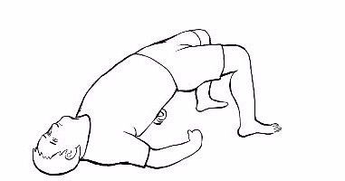 仰卧位双膝屈曲,以足跟、双肘、头部当支点,抬起骨盆,尽量把腹部与膝关节抬平,然后缓慢放下,一起一落为一个动作,连续20-30个。