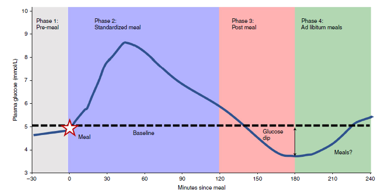 随着成人和儿童的肥胖症患病率在全世界范围内不断提高,肥胖已经被列为了全球性的重大健康挑战。低热量或限制饮食、运动等是大家常常选择的减肥方式,但往往会发现,这些方式在短期减轻体重的同时,也会刺激人的食欲上升,造成减脂反弹。因此,控制餐后食欲成为了防止体重恢复的一个研究热点。 近日,来自英国伦敦国王学院的研究人员在《Nature Metabolism》上发表了题为Postprandial glycaemic dips predict appetite and energy intake in healthy individuals的研究成果,揭示了影响餐后食欲和能量摄入的关键因素。他们发现,餐后血糖水平可能是人们减肥路上的一大障碍,进食数小时后血糖水平大幅下降的人,将比其他人更加容易饥饿,也会进一步导致比其他人多摄入数百卡路里的能量。