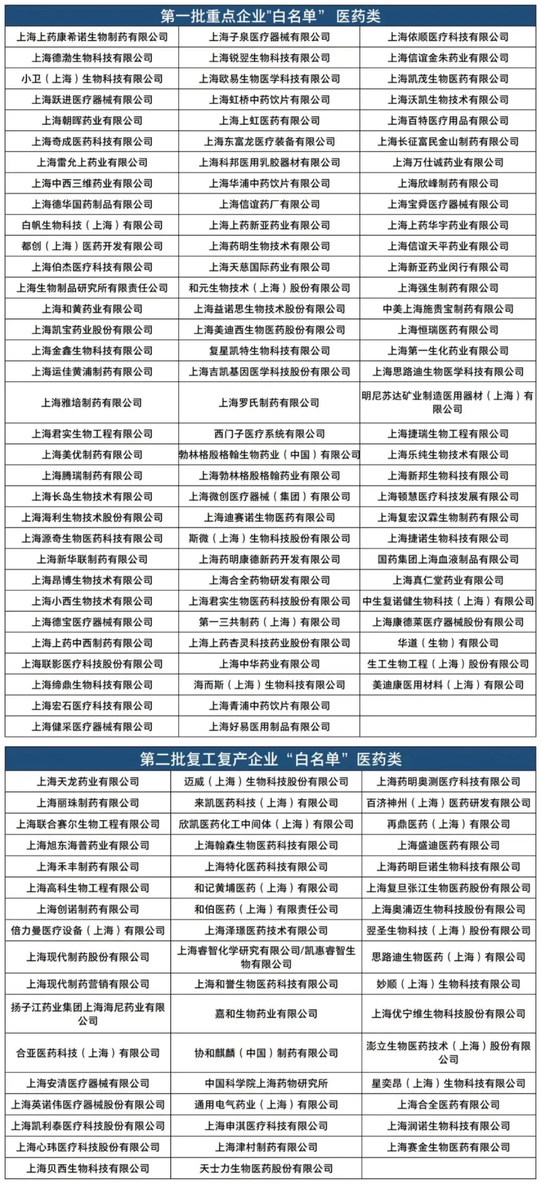 (图1)。观察两批次复工复产重点企业“白名单”,共有数百家医药企业进入白名单。包括口罩、防护服等抗疫物资生产及供应商企业、药品生产企业、第三方核酸检测、疫苗生产及研发机构和企业等。随着越来越多的医疗医药企业加入复工复产行列,上海会源源不断的生产出各类救命医疗医药产品和抗疫医疗物资,全力以“复”守护生命线、为战疫提供持续专业力量支撑。