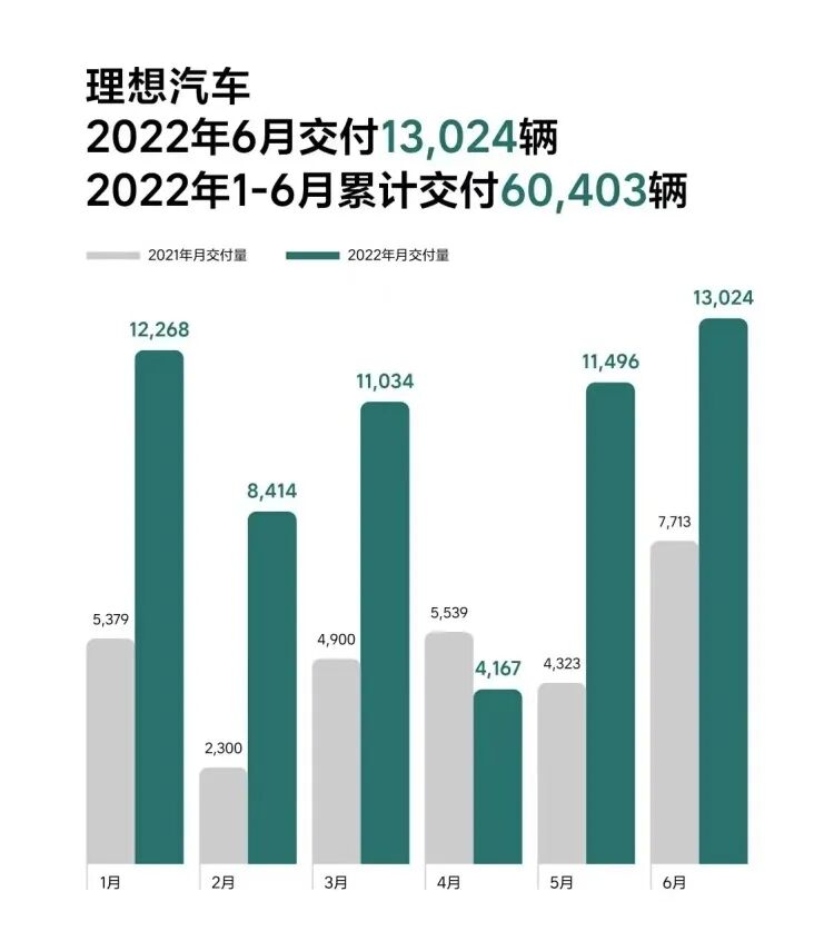蔚来于2022年6月交付新车12961辆,同比增长60.3%——
