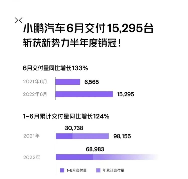 小鹏保住了单月销量第一,并且在上半年交付量成绩也位列新造车第一。