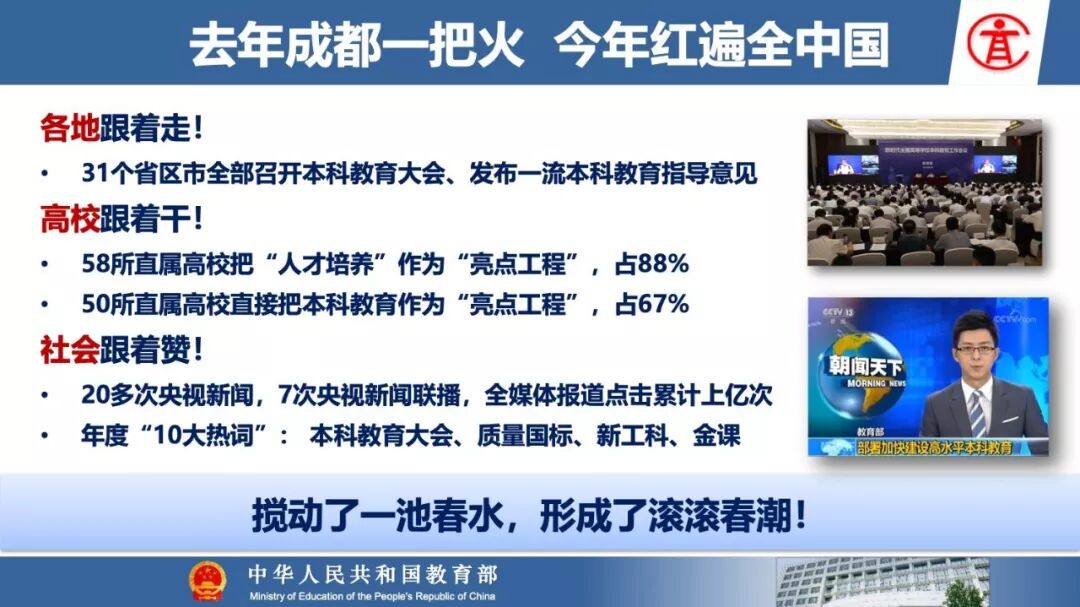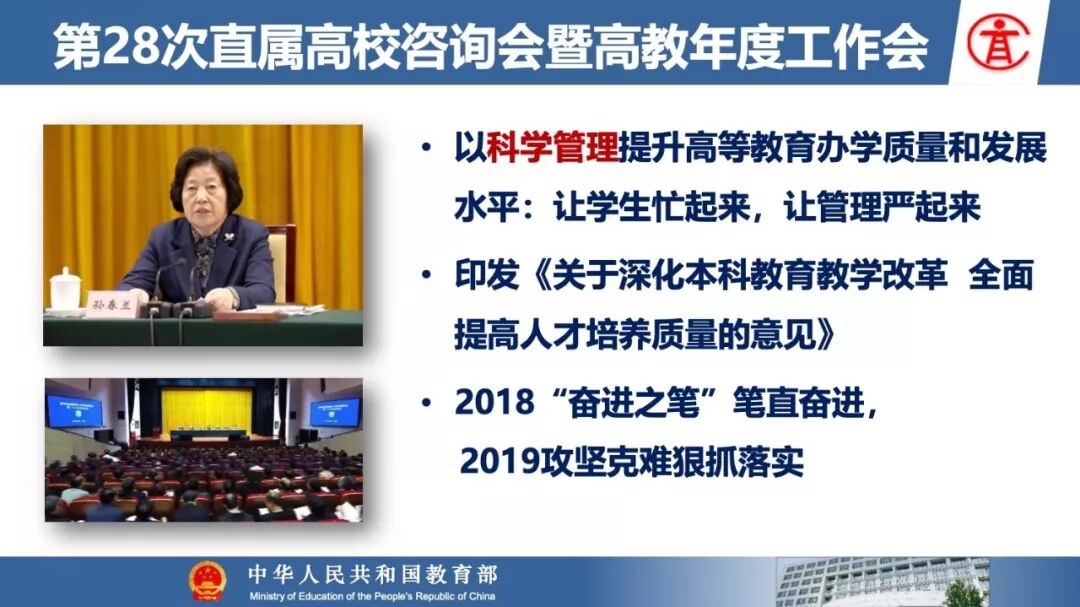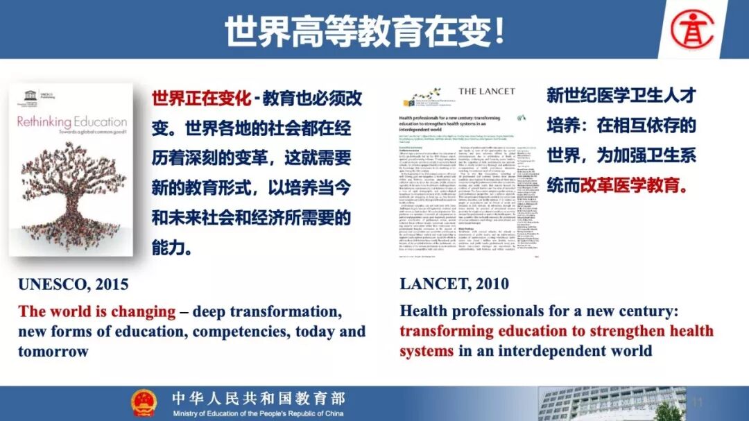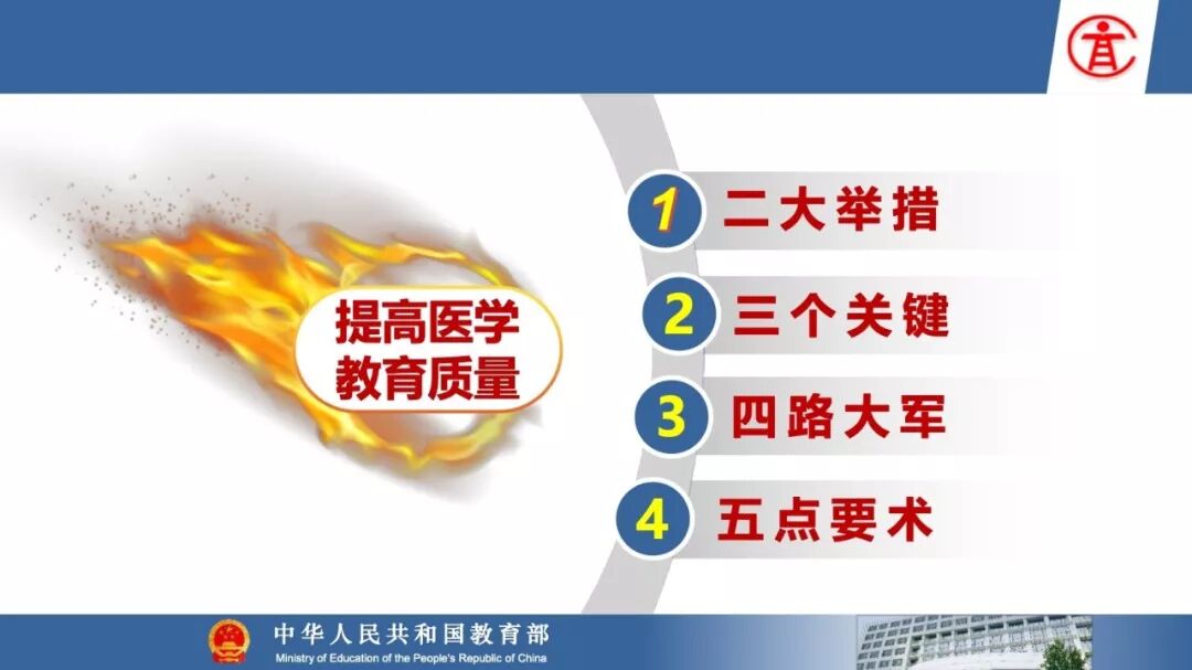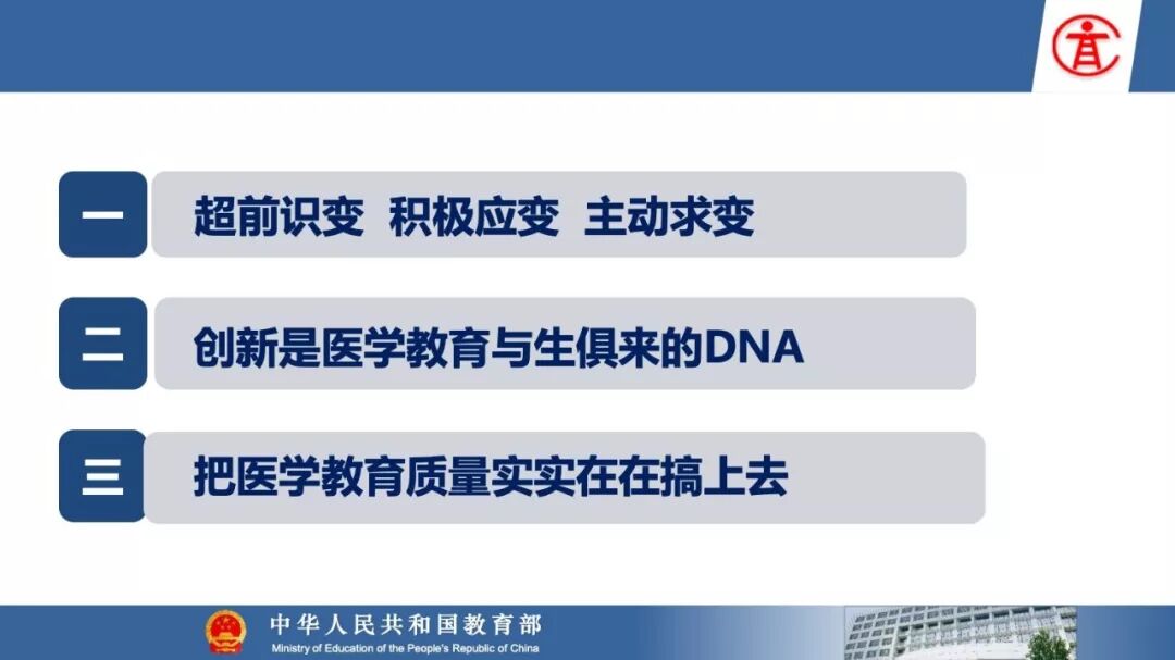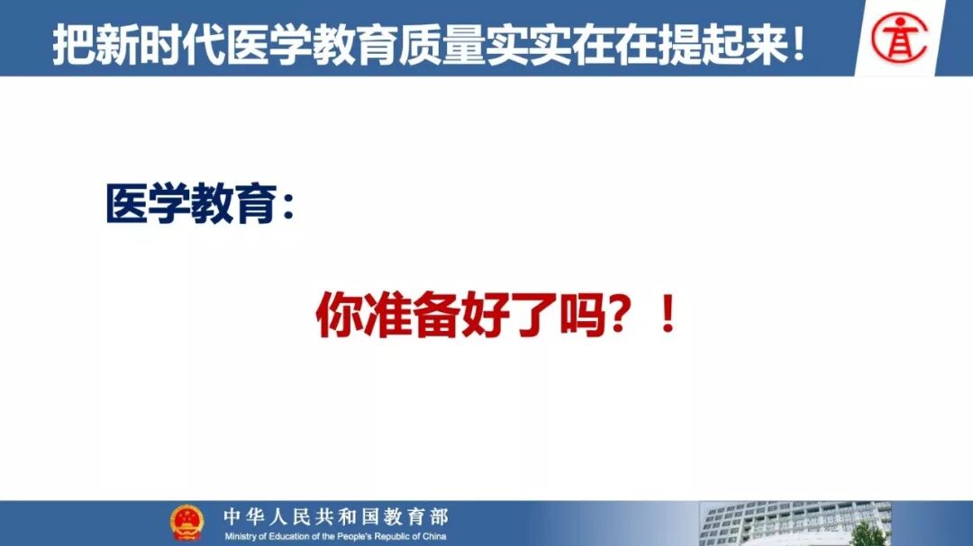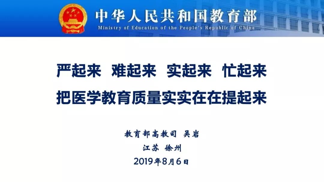 吴岩司长出席本次会议并做了题为《严起来 难起来 实起来 忙起来 把医学教育质量实实在在提起来》的大会报告,报告指出要精准把握高等教育发展大势,超前识变、积极应变、主动求变;提到医科教育要创新发展,主要包括理念更新、背景更新和专业更新;最后强调要通过一系列行动,把医学教育质量实实在在提起来!让金专、金课、金师随处可见!