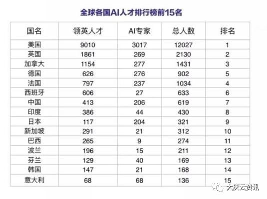 ●全球人工智能人才排行榜:美国第一,中国仅排名第七
