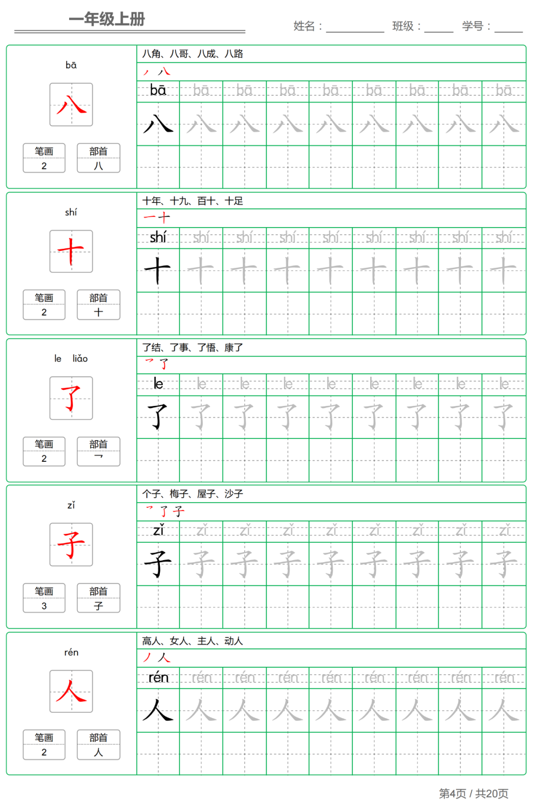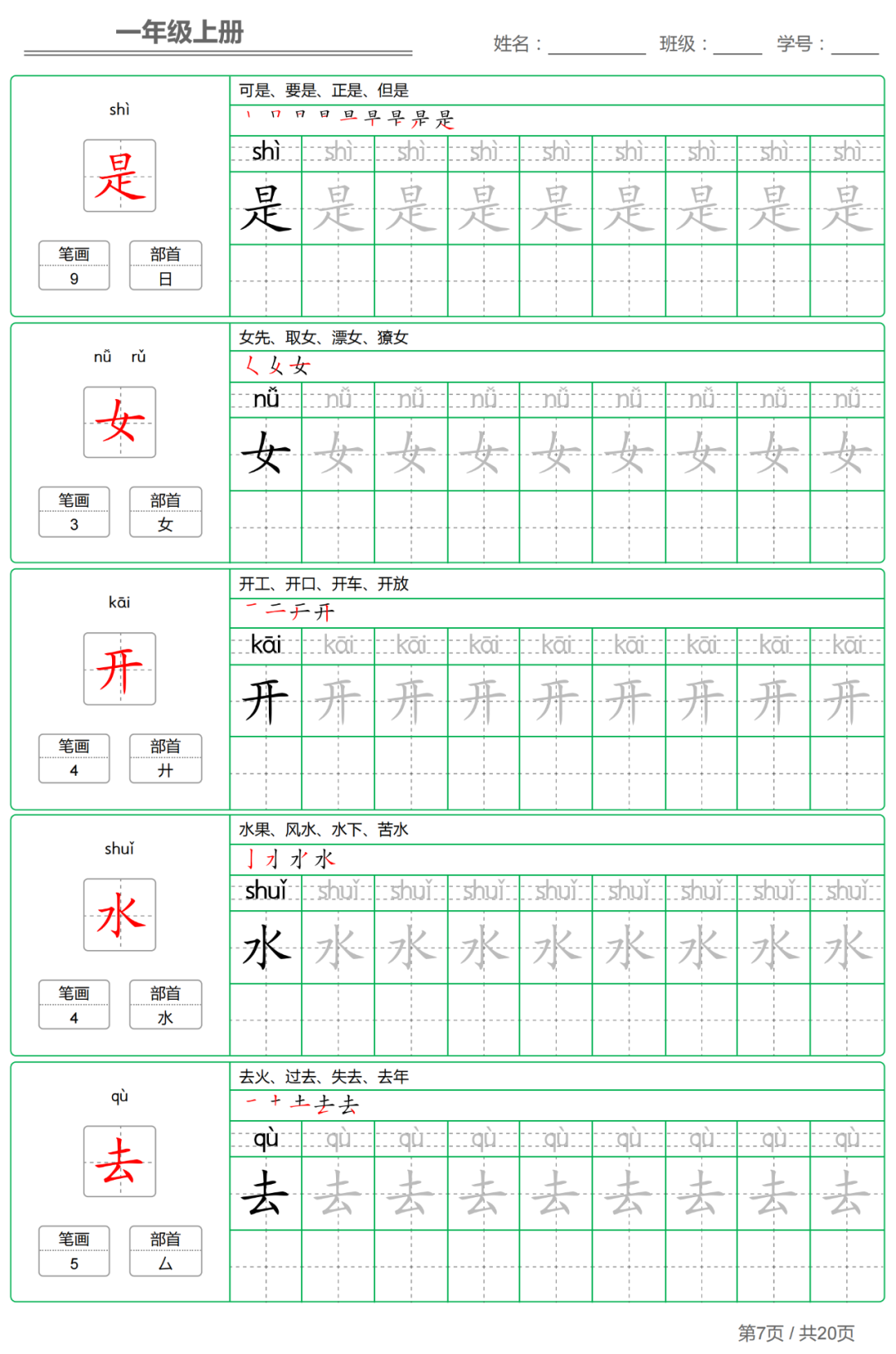这份字帖是根据统编版一年级语文上册教材整理,孩子下学期就要接触学习,在这里小研老师提前分享给大家,可以让孩子在暑假提前学习练字,为下学期的学习打下基础。【字帖有两套,大家可以选择其中一套打印给孩子练字】