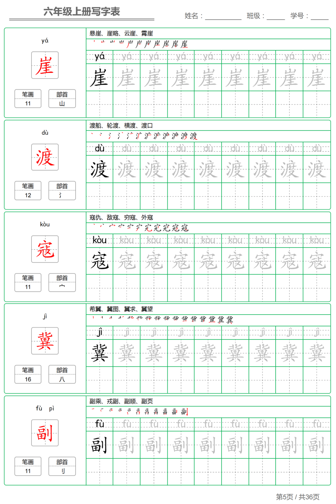 这份字帖是根据统编版六年级语文上册教材整理,孩子下学期就要接触学习,在这里小研老师提前分享给大家,可以让孩子在暑假提前学习练字,为下学期的学习打下基础。【字帖有两套,大家可以选择其中一套打印给孩子练字】