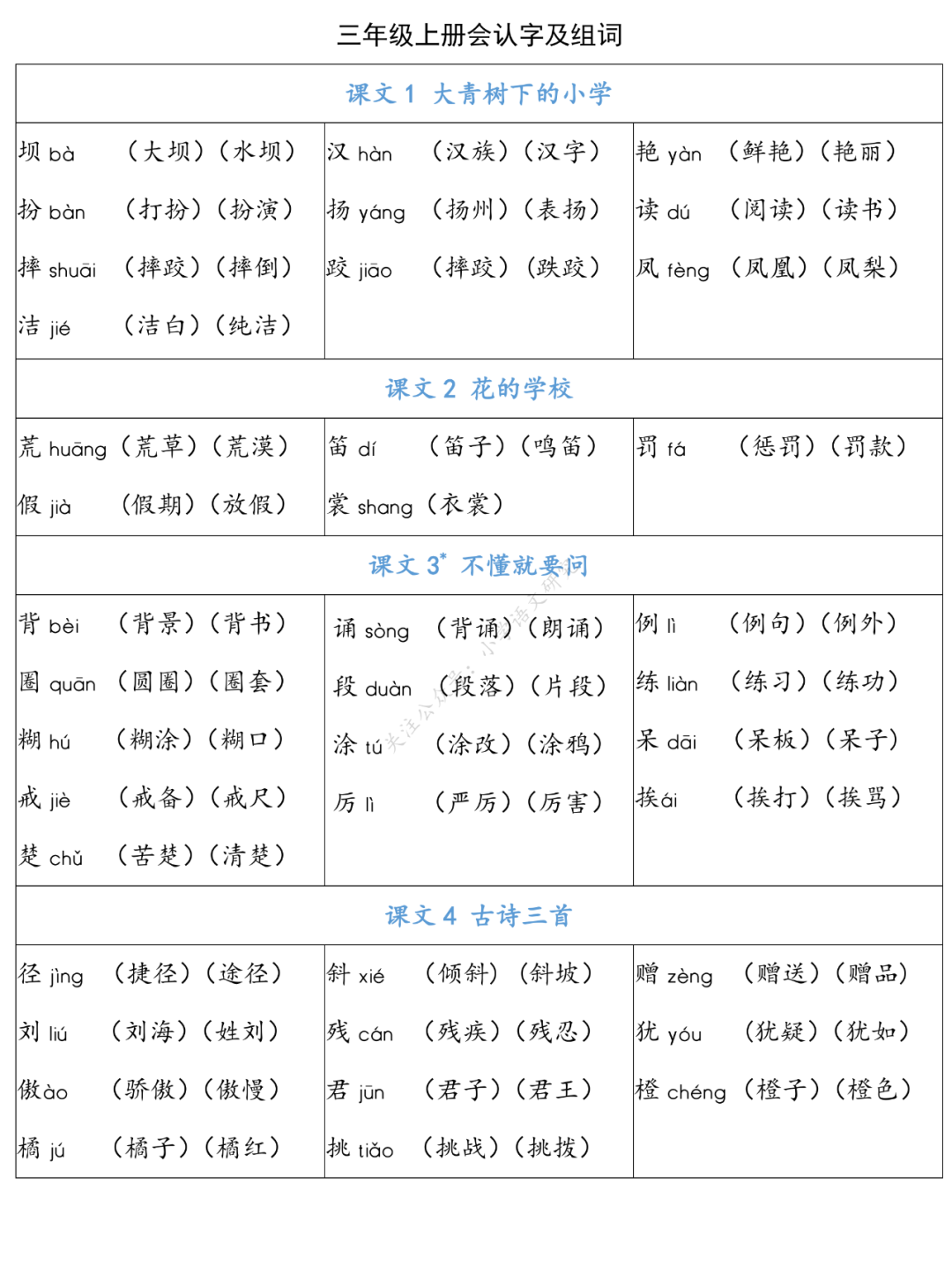 统编版语文三年级上册生字组词汇总(可下载、打印)