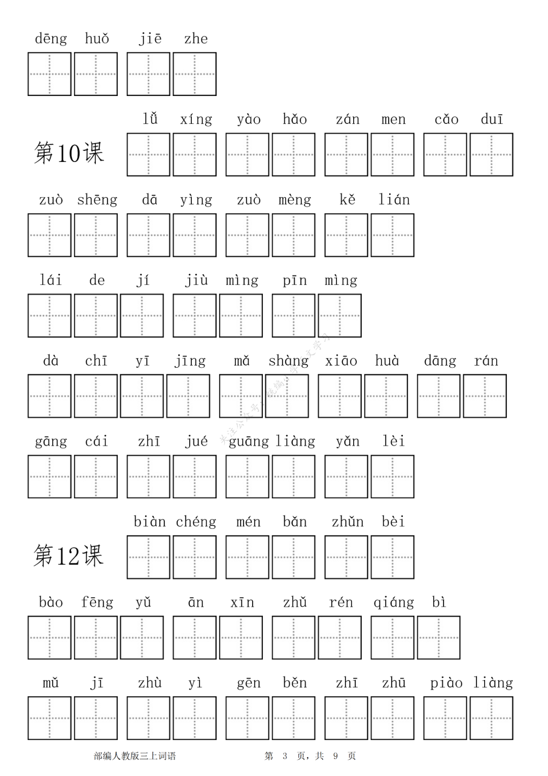 统编版语文三年级(上)看拼音写词语练习丨可打印