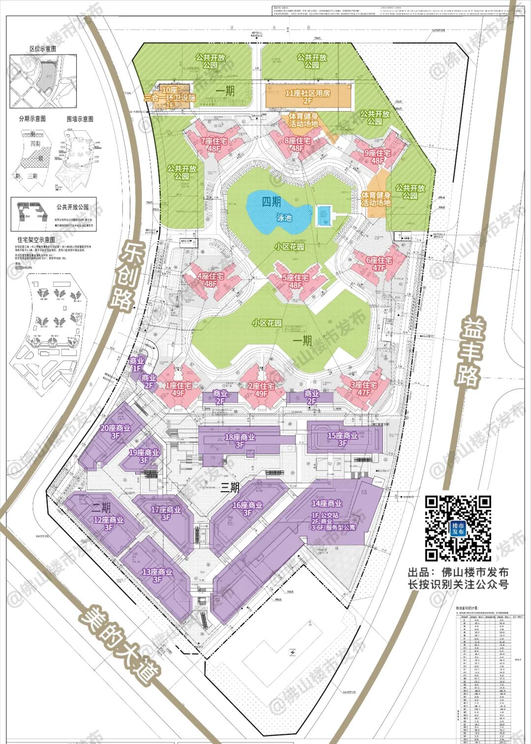 整个项目共分为4期,其中,1-9座为47-49层的高层住宅,住宅部分将打造一层六户和八户产品。而12-20座为商业,其中14座商业楼首层设置公交首末站,2层为商业,3-6层为服务型公寓,项目还将建设不少于12653平的开放公园绿地。