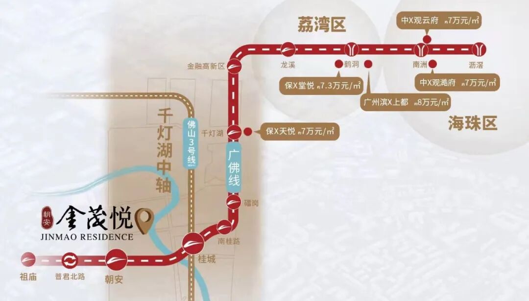 相隔几个地铁站,千灯湖、荔湾房价6-7万/平。而朝安金茂悦只要1/2千灯湖价,如此中心洼地,广佛精英怎能不爱?
