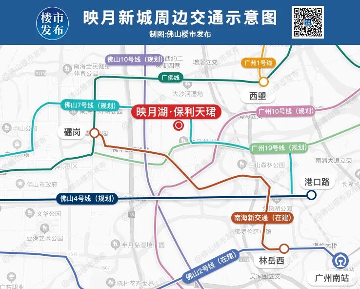 佛山地铁10号线、广州10号线南延线、广州19号线南延线重磅引入,按照规划映月湖·保利天珺项目旁也将设一个站点!