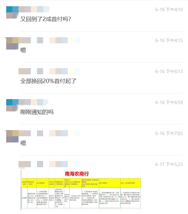 但很快,事情又出现翻转:6月16日下午,又有消息称8镇街恢复两成首付。