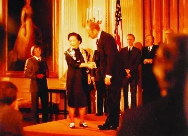 1976年,吴健雄在美国白宫接受福特总统颁发的国家科学奖