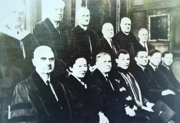 1958年,普林斯顿大学将名誉博士学位首次授予女性科学家——吴健雄(前左二),同时获得该学位的还有李政道(前右一)、杨振宁(前右二)