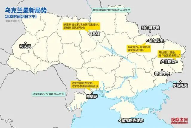 同时,俄军四面齐发,南边已经攻陷黑海沿岸重镇敖德萨,北边两路一路从俄罗斯南下,一路从白俄罗斯南下,直驱基辅,接应先头进入基辅的俄伞兵部队。