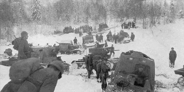 苏芬战争跟现在发生的俄乌战争很相似,斯大林的这个有限行动也是没有做国内准备和动员的,这导致最开始的几天苏军完全陷入混乱,没带冬衣的,不知道自己去干嘛的,彻底没接受过军事训练的,都被推上战场去了。