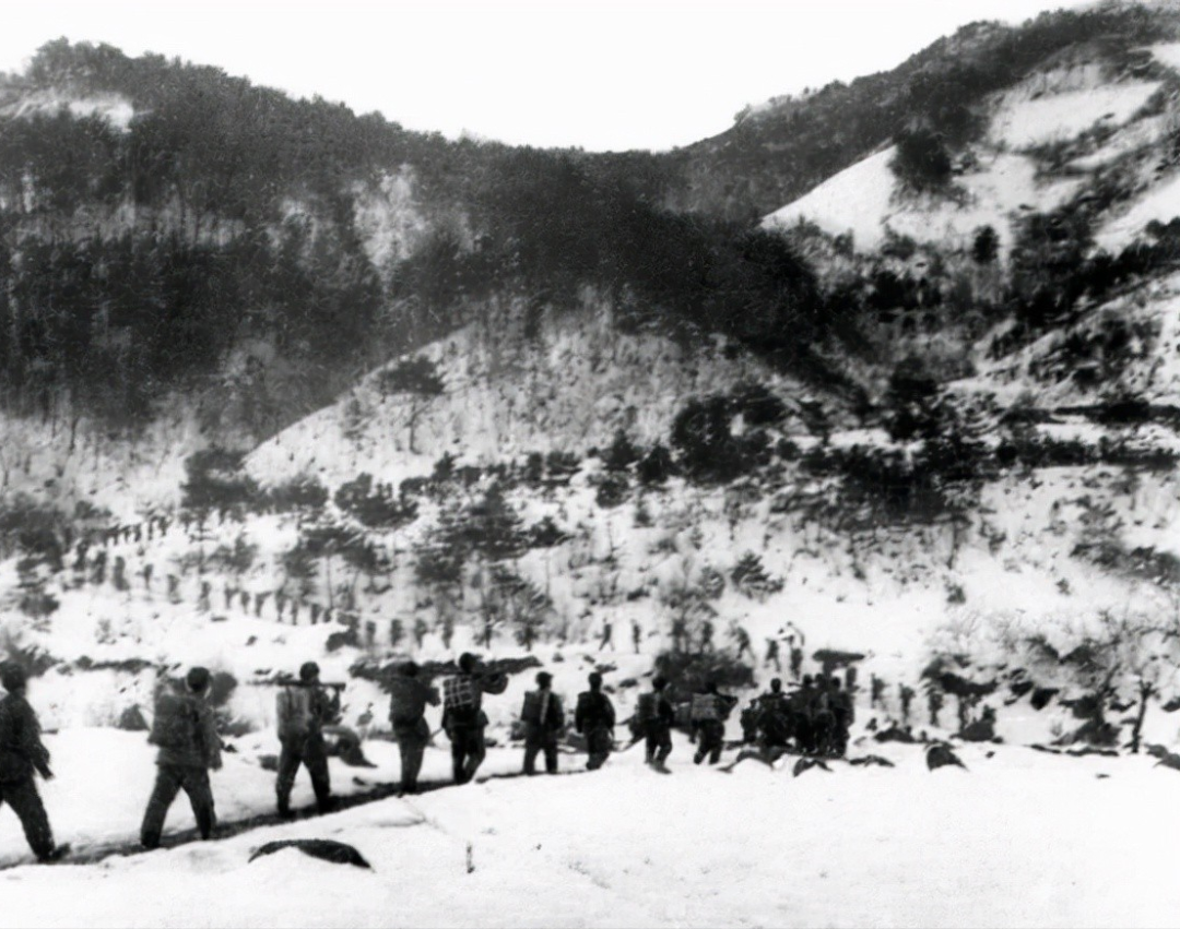 这时候进入朝鲜以后呢,零下35度,外面都下着雪,我们这个59师呢走了三天路以后呢,军里指示要我们这个师要翻过亚德岭1500米高山,如果说我们绕道走要绕一个星期,这样子翻过山以后就插到了敌人的后面。