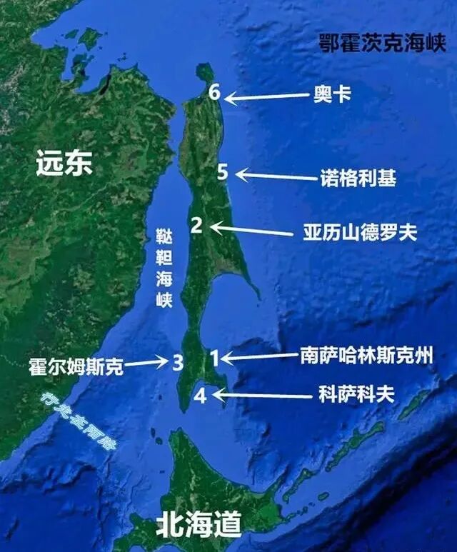 6、日俄战争期间,沙俄战败,库页岛被一分为二,其中北部归俄国,南部成为日本领土。二战末期,苏军出兵我国东北,将盘踞在库页岛上的日本人赶走,重新占据库页岛全境,一直到现在。