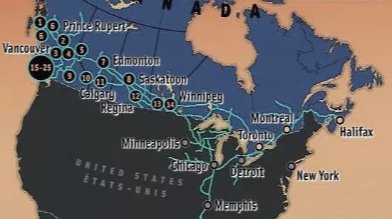 1871年人口仅350万的加拿大决定修建世界上最长的铁路,仿佛只有这条“加拿大太平洋铁路”完工,“加拿大自治领”才不仅仅是一个地理上的措辞。伊尼斯1923年出版的博士论文标题就是《加拿大太平洋铁路史》。太平洋铁路有力的连接东西部,促进省际之间的贸易,帮助加拿大走向统一的独立国家。但很快他意识到这当中的问题,他发现大宗商品贸易才是加拿大特殊地理条件下的主导经济模式,而供大宗商品传输的圣劳伦斯河经由大西洋与欧洲的联系,才是加拿大历史、政治经济的决定性因素。所以他接下来几本专著(《加拿大皮革贸易》《鳕鱼业》)都和这条线索有关。伊尼斯意识到,圣劳伦斯河与五大湖的勾连,使得加拿大与欧洲的每一种联系都伴随与美国的纠葛,所以加拿大几乎注定是一个处于“之间”的边缘地带(这一点和德国有些类似)。