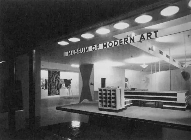 1938年12月7日,展览“包豪斯:1919-1928”在纽约现代艺术博物馆的临时展馆洛克菲勒中心开幕。这次展览由纽约现代艺术博物馆的建筑与工业设计部主办,赫伯特·拜耶负责展呈设计,格罗皮乌斯和阿尔弗雷德·巴尔担任策展人。这是博物馆在它的临时展馆洛克菲勒中心举办的最后一次展览,也是自1937年6月搬入洛克菲勒中心以来参观量最多的一次展览,几乎每天都能达到402人。当然,这或许也是MoMA开馆以来收到最大争议的一次展览。