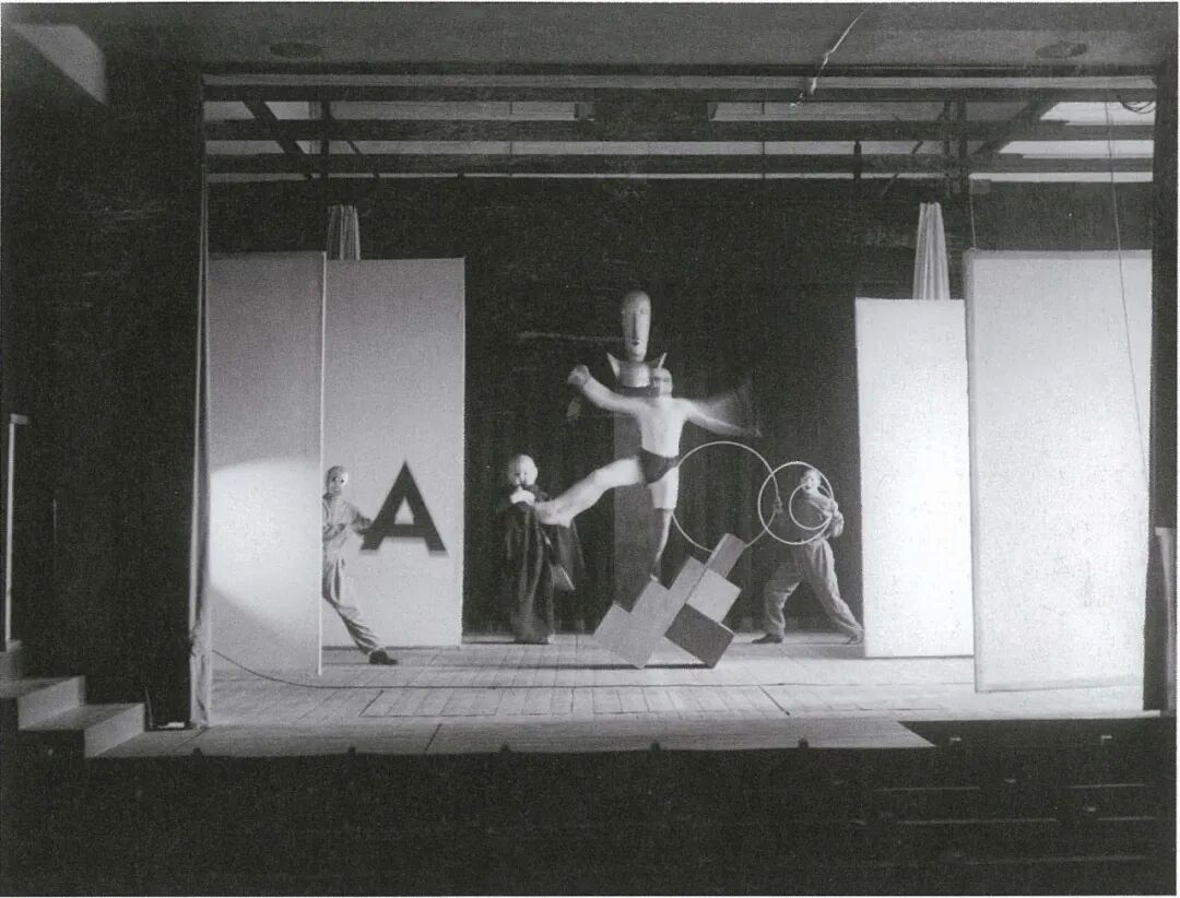 与此同时,施莱默正在他的舞台上为一种新德国剧场发展新的形式,即文辛格所提及的“舞台构型”。德绍包豪斯时期的作品整体嫁接在魏玛包豪斯浪漫主义的格式塔思维之上,并综合了(新)材料、时间和运动等元素,在施莱默这里尤为重要的,则是加入身体元素。