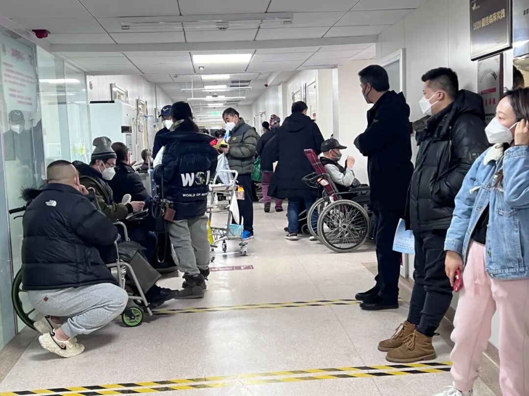 12月15日,国务院联防联控机制新闻发布会宣布,当前,疫情防控的工作重心从防控感染转到医疗救治。三年来,医疗系统再次迎来“大考”时刻。一组数据可以说明当下的压力:北京市120急救热线日常呼叫量约为五千,高峰时段不超过一万,而近期呼叫量一度高达三万多;天津市发热门诊就诊量从平日1000人左右激增到3万人,增长了30倍。多位一线医务人员向北青深一度讲述了他们当下的处境:随着“新十条”等政策的出台,核酸不再是进入医院的“门槛”,现在的头等大事是“治病救人”。所有医院都在抽调力量,支援发热门诊和急诊。同时,随着社会面感染人数上升,院内感染已经无法避免,医疗队伍正承受着大面积“减员”。有的科室只剩下一两名医生在值守,还有的医护正在“带病返岗”。特别是一些条件本就薄弱的基层医院,人力物资都出现了缺口。一位隔离病房的护理负责人,在看着身边同事一个个倒下后,已经“不敢”生病了,她有些自嘲地说:“还没阳,就接着干吧。”发热门诊内等候的患者| 李晶晶