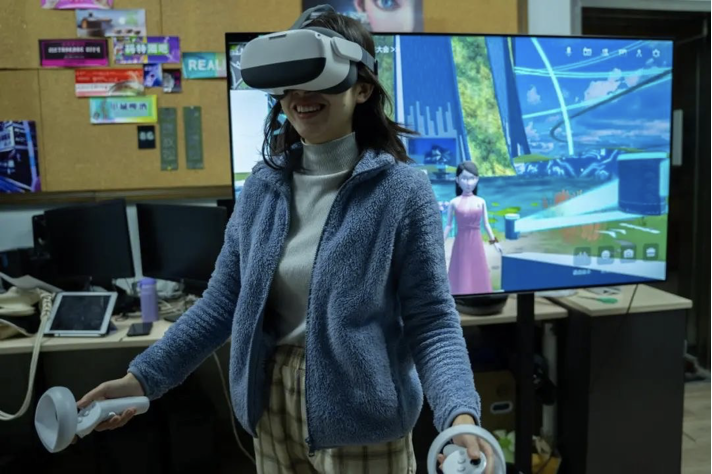 用户在VR设备中体验虚拟中传校园