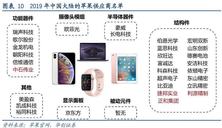 在促进代工产业标准化的同时,苹果还带动了代工产业的繁荣,除了富士康之外,苹果也扶持了引入新供应商,比如和硕、纬创、立讯、比亚迪。比如比亚迪电子切入了iPad的组装,立讯切入Airpods、Apple Watch的组装,闻泰科技切入了MacBook组装。
