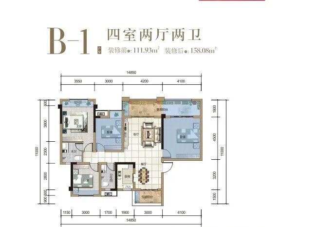 A1户型改造前120平米,改造后166平米,南北通透 一梯一户纯板式 不计面积46平米