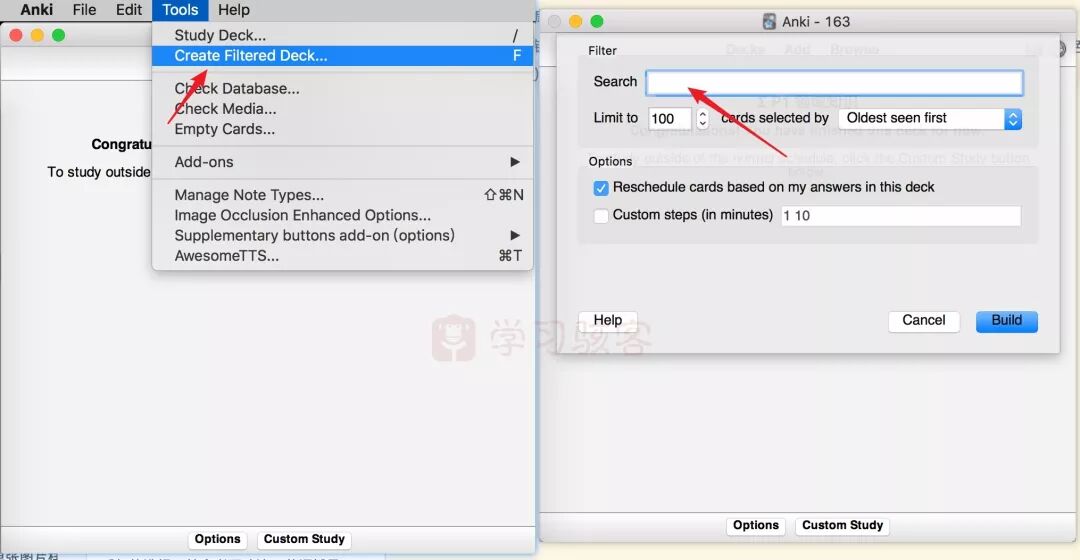 有别于调大新学卡片的数量,之前Leo曾简单提到过Custom Study,即在学完常规任务之后,再增加一些额外的学习。