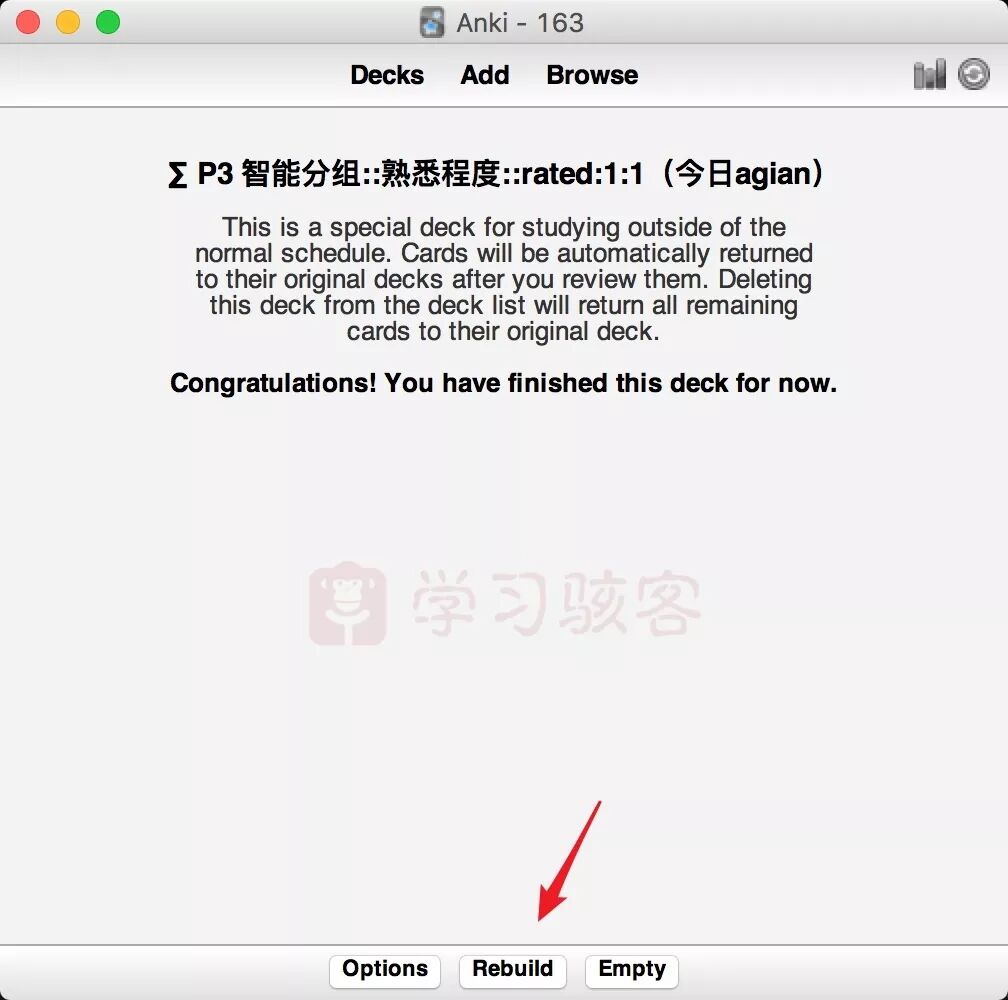 下面的Reschedule cards…前不要勾选,则对筛选记忆库的学习不会对原有记忆库产生影响,建议不要勾选。